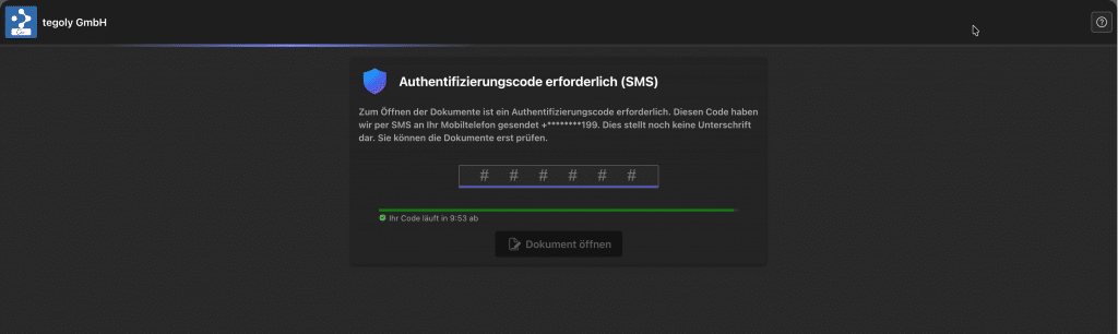 If you receive a document with an advanced FES signature, we will send you a 6-digit SMS pin. Please enter this in the field and then the documents can be signed as described above.