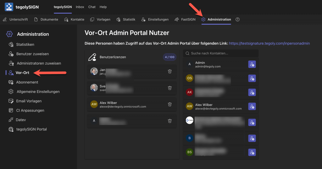 Für Nutzer die sich mit ihrer E-Mail-Adresse an tegolySIGN anmelden muss der Vor-Ort Admin Nutezr erste unter Benutzer angelegt werden. Hierzu gehe wie folgt vor: