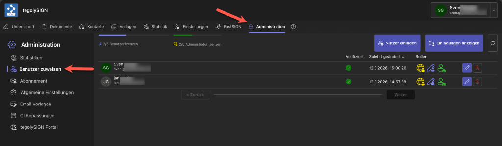 • Benutzer zuweisen in der tegolySIGN WebApp (nicht MS Teams)
